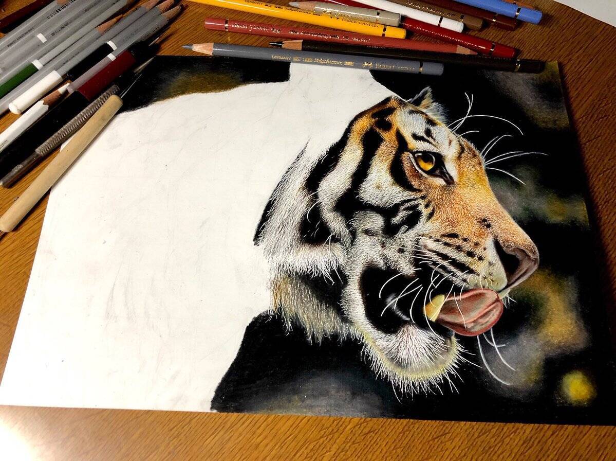 写真じゃないのか 色鉛筆で丁寧に描かれた虎の毛並みが本物のように美しい 19年7月11日 エキサイトニュース